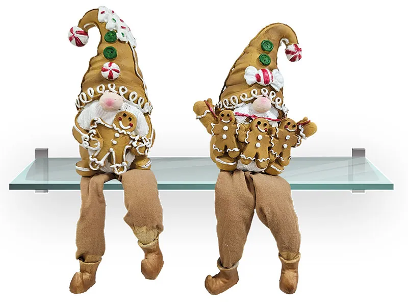 Bring a touch of charm to your home with our adorable gnome duo! Each sporting playful floppy fabric legs that dangle wherever you display them, they add the perfect touch of gingerbread design to your home.