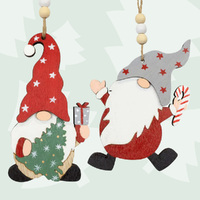 10cm Wooden Christmas Figurine Hanging Decoration- Gnome & Candy Cane