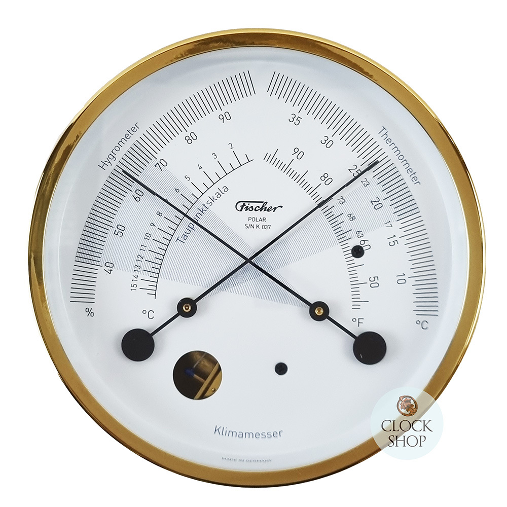 13.3cm Polished Brass Polar Climate Meter With Thermometer & Hygrometer By FISCHER
