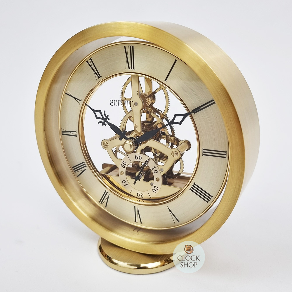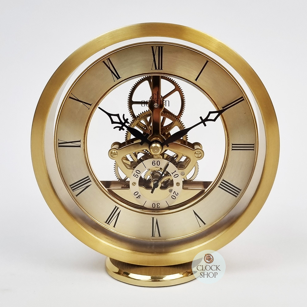 14cm Millendon Gold Battery Skeleton Table Clock By ACCTIM (Cracked Back)