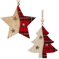 15cm Tartan Wooden Hanging Decoration- Assorted Designs