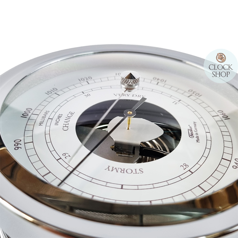 16.5cm Chrome Barometer By FISCHER (Small Crack In Bezel)