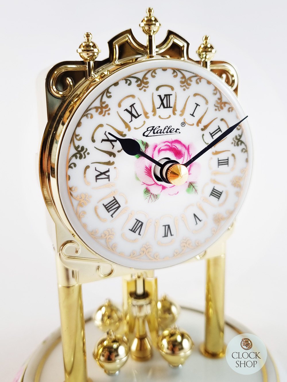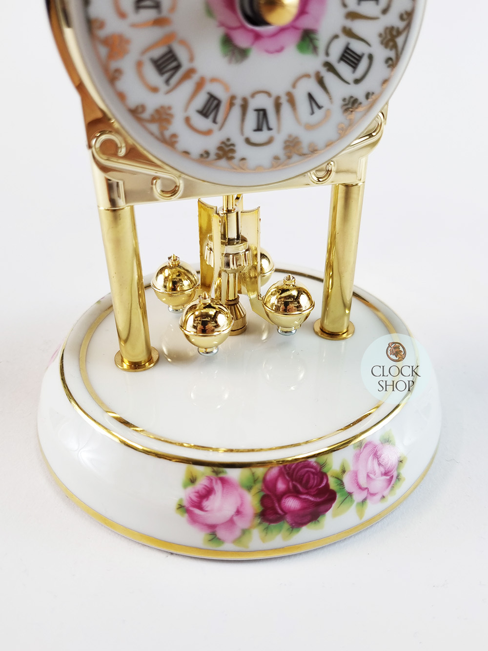 - Addition of colourful pink roses in a baroque-motif style, both on the dial as well as on the base of the clock