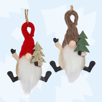 Add a touch of charm to your Christmas decor this year with these adorable wooden Christmas hanging ornaments. Each hanging decoration features a Christmas gnome with a cute fluffy hat, available with either a red or brown hat (each sold seperately).