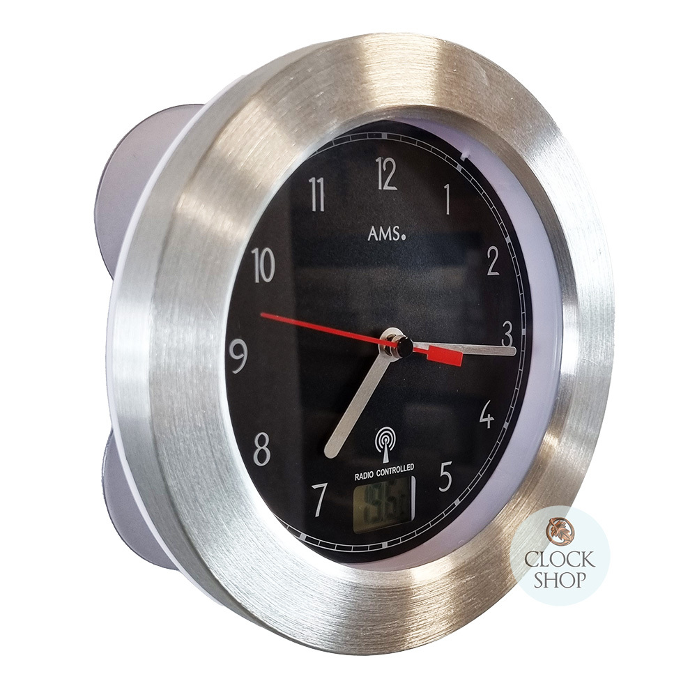 17cm Silver/Black Round Wall Clock With Temperature By AMS