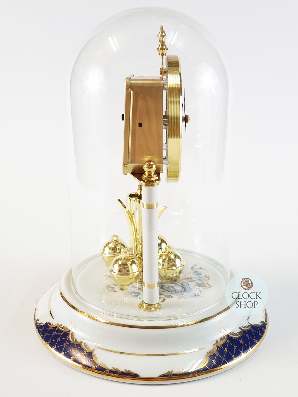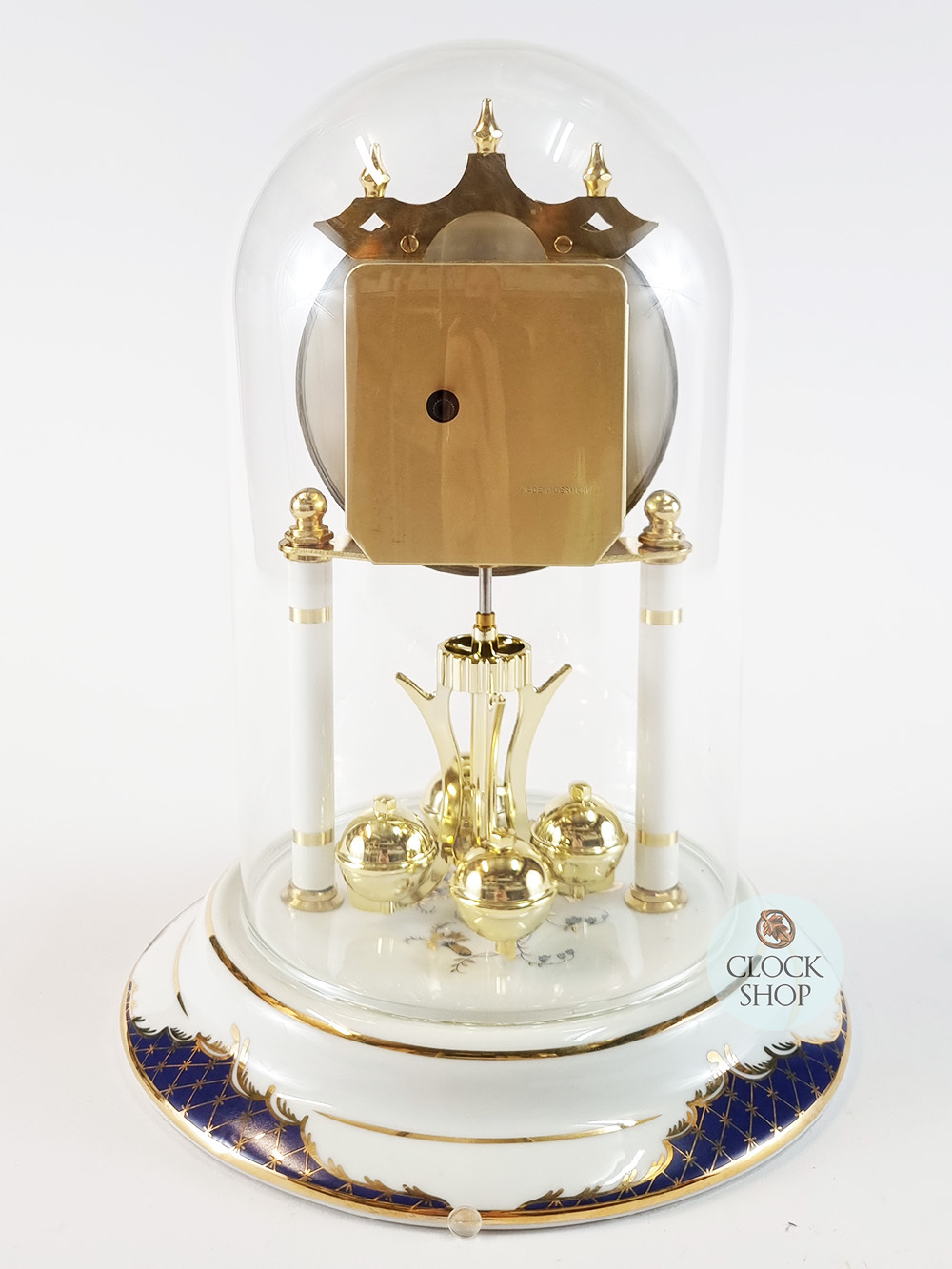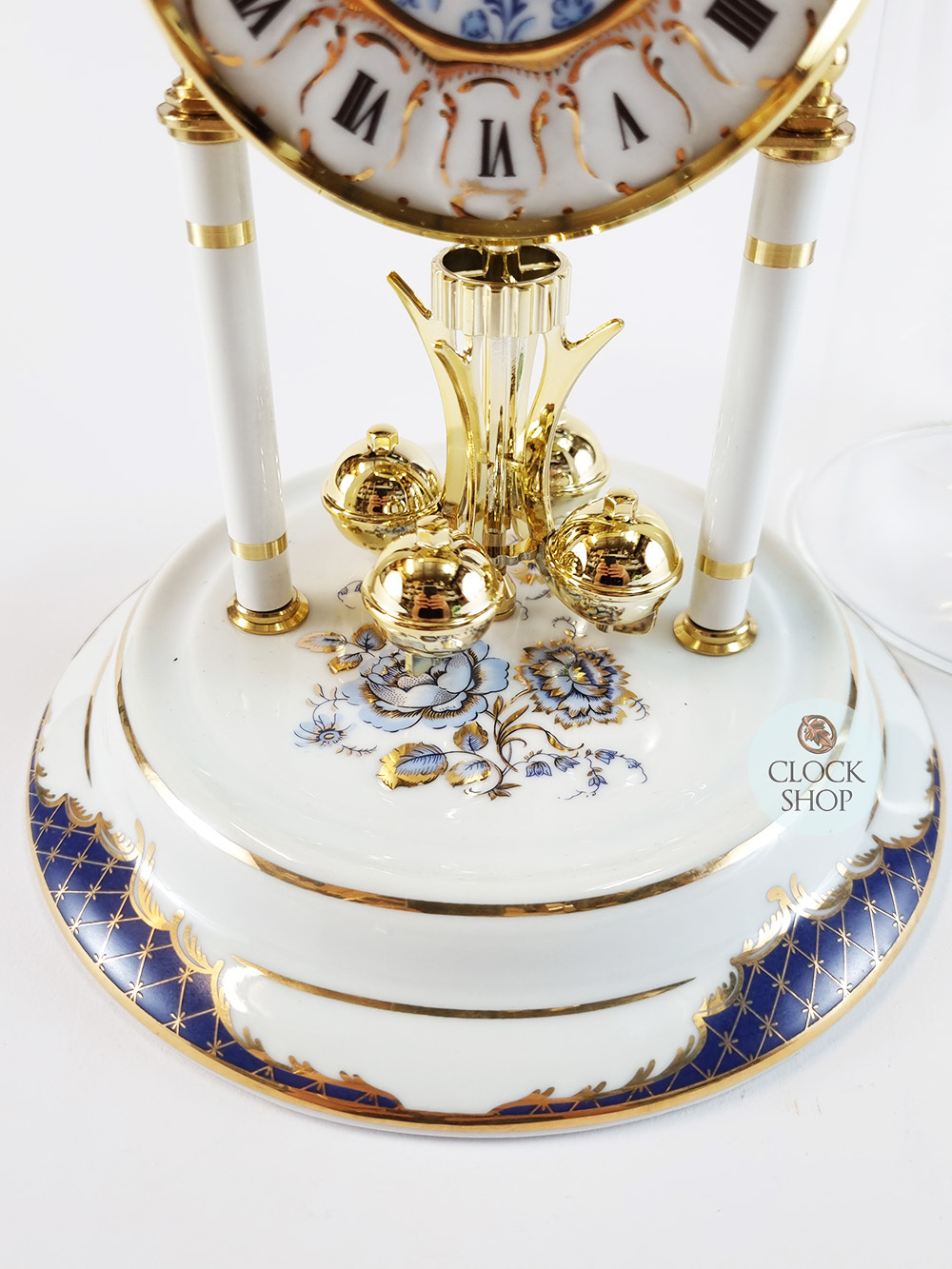 23cm White & Gold Porcelain Anniversary Clock With Blue Decorative Detail By HALLER