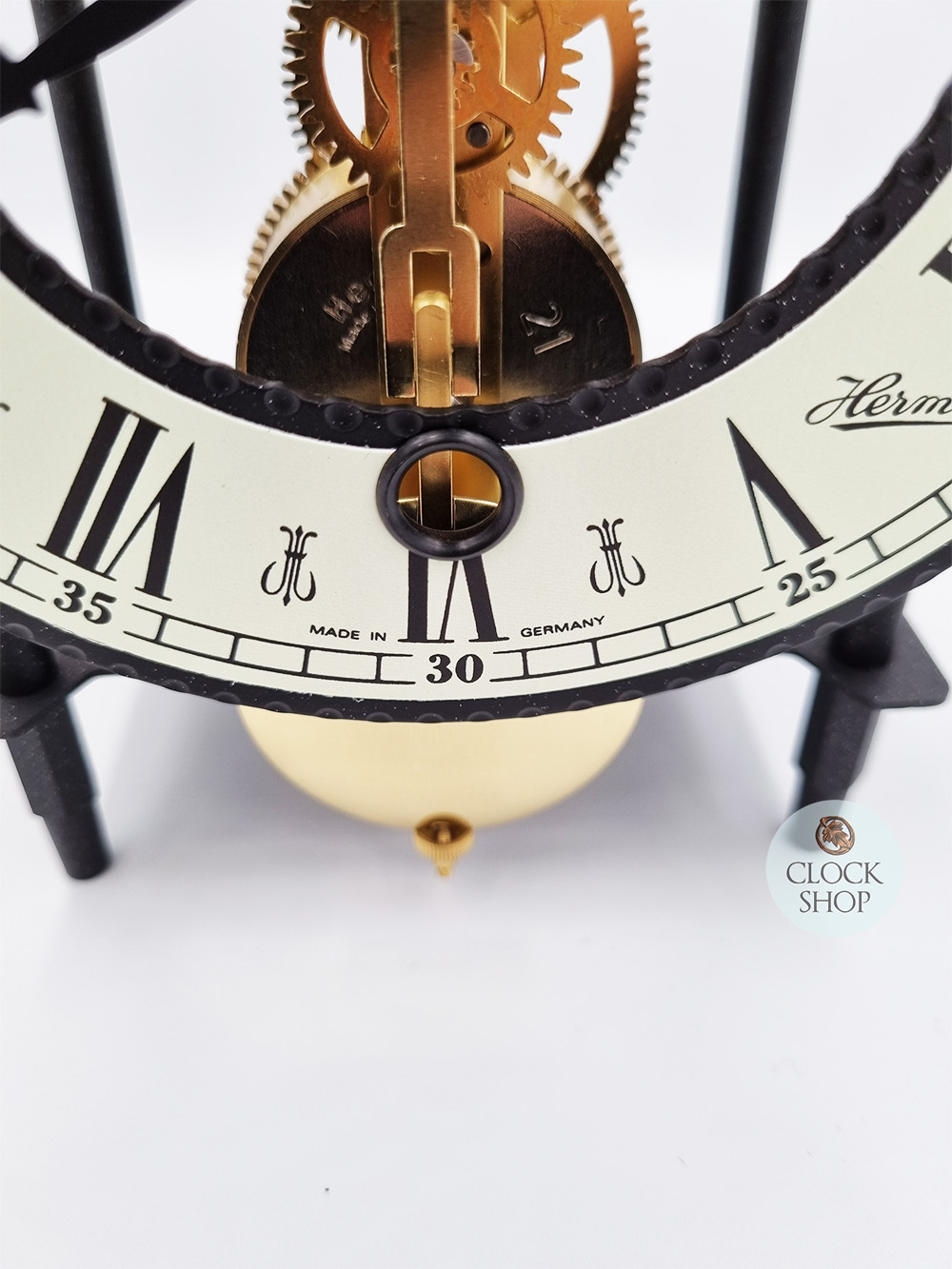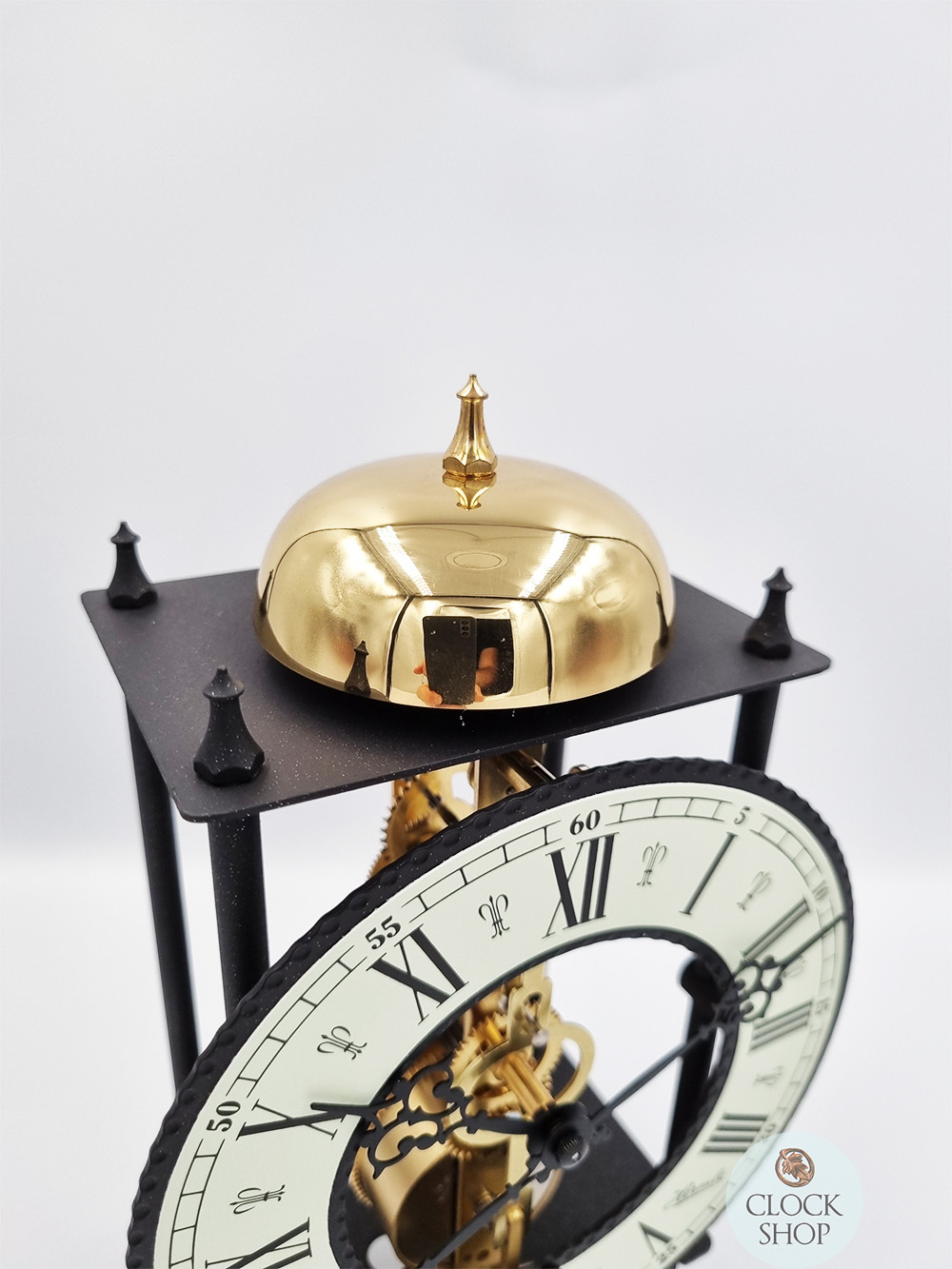 24cm Black Mechanical Skeleton Table Clock With Bell Strike By HERMLE