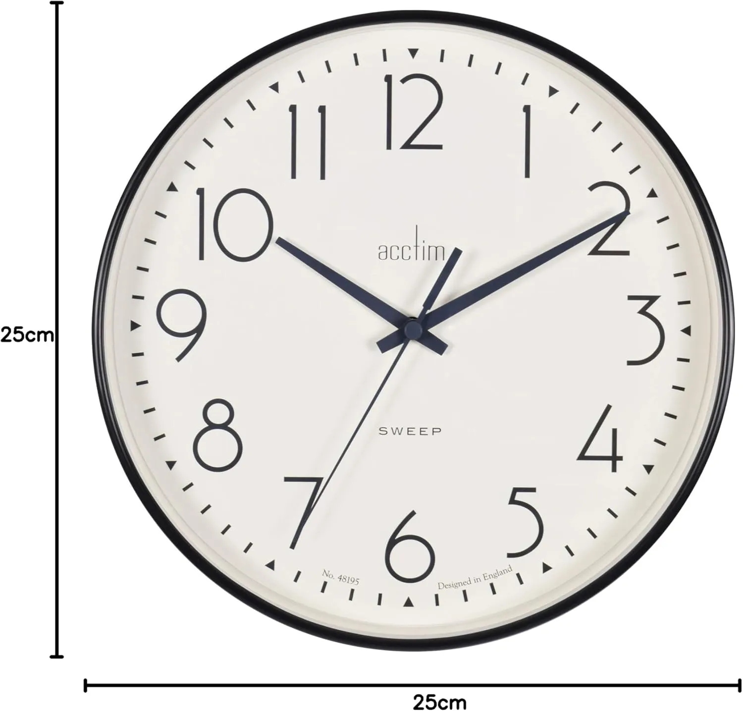 25cm Earl Black Round Silent Wall Clock By ACCTIM