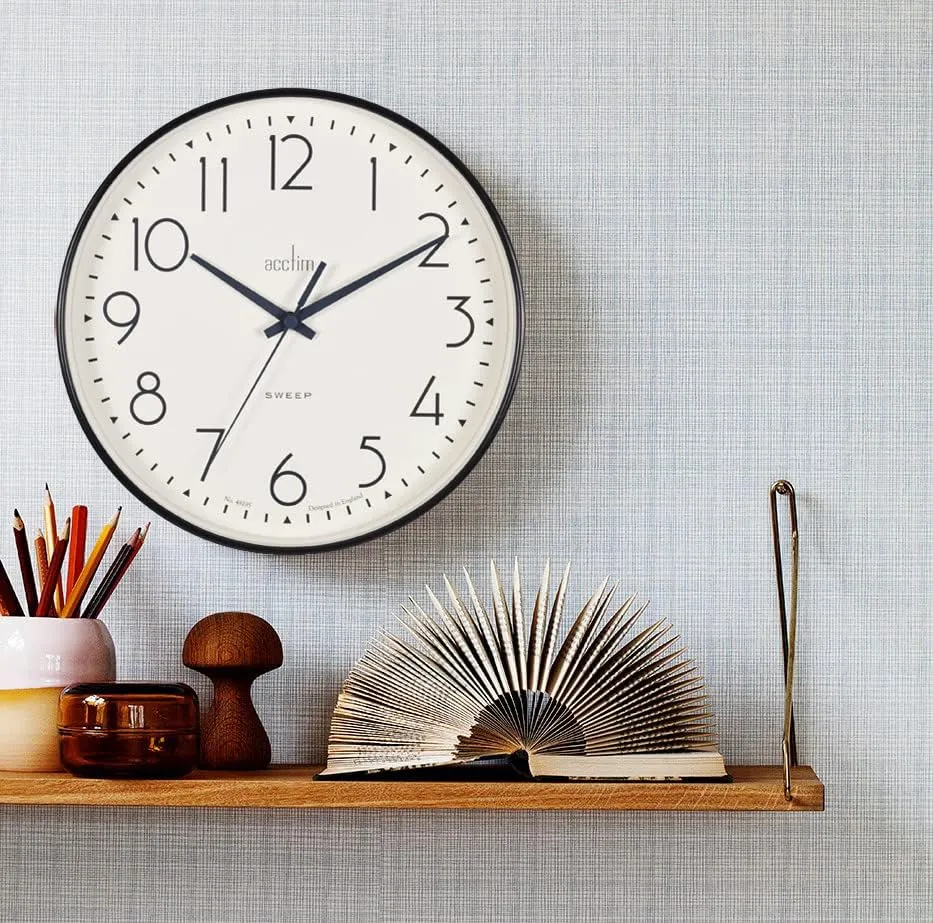 This clean modern Earl Black Round Wall Clock By ACCTIM, fits perfectly in any modern home or workplace. Itβs fantastic, classic analogue design could easily find a home on the kitchen, living or dining room walls, or add a desirable improvement to a number of different workplaces including the office, or a school, hospital, dentist, or doctors settings, amongst a number of other businesses, without adding too much flair.