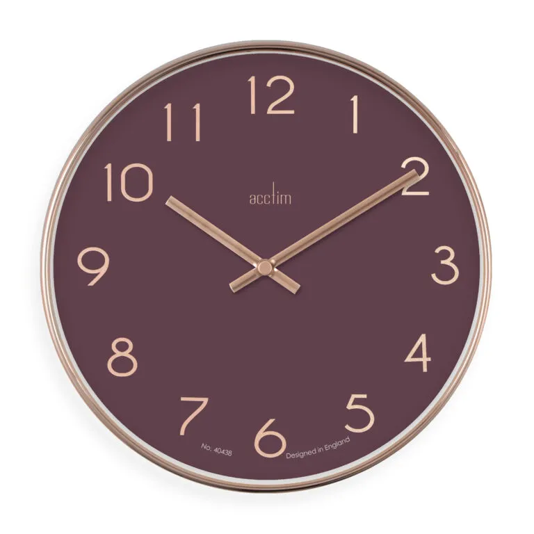 25cm Elma Mulberry & Gold Round Wall Clock By ACCTIM