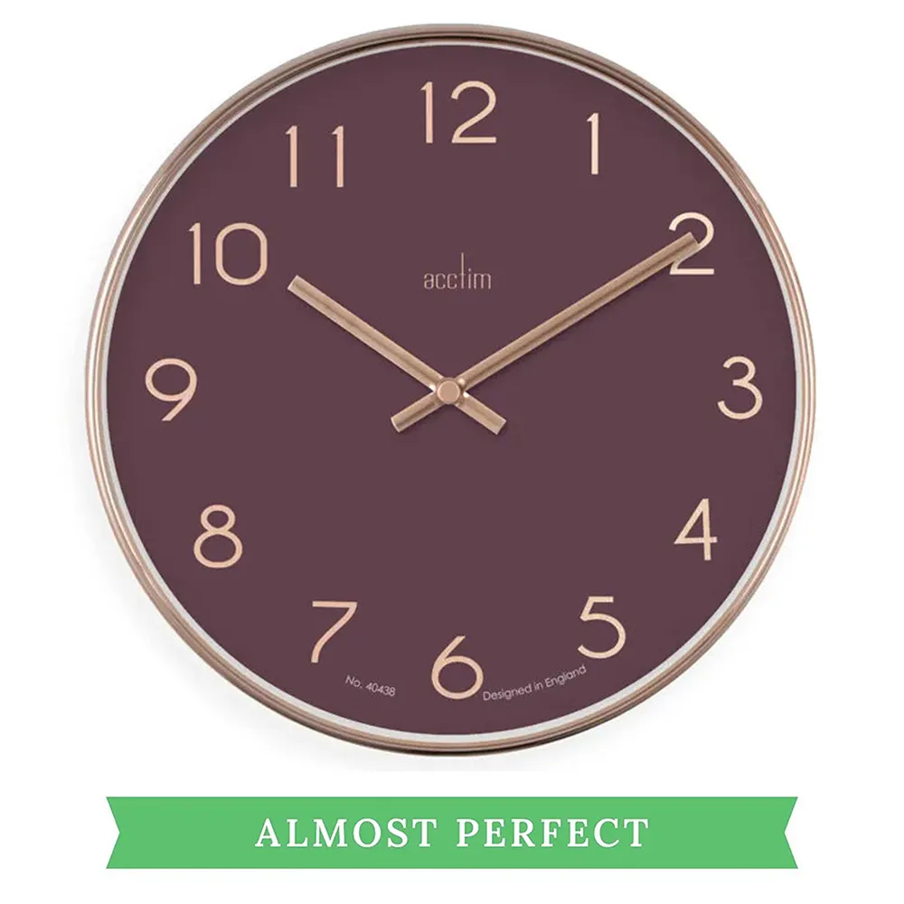 25cm Elma Mulberry & Gold Round Wall Clock By ACCTIM (Small Scratch)