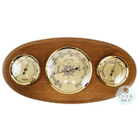 26cm Walnut Weather Station With Barometer Thermometer & Hygrometer By FISCHER