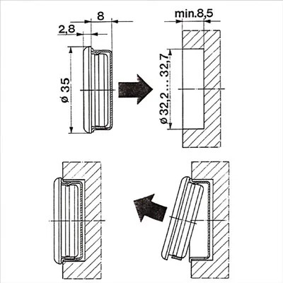 Suits hole size: 32.2mm min - 32.7mm diameter; hole depth 8.5mm