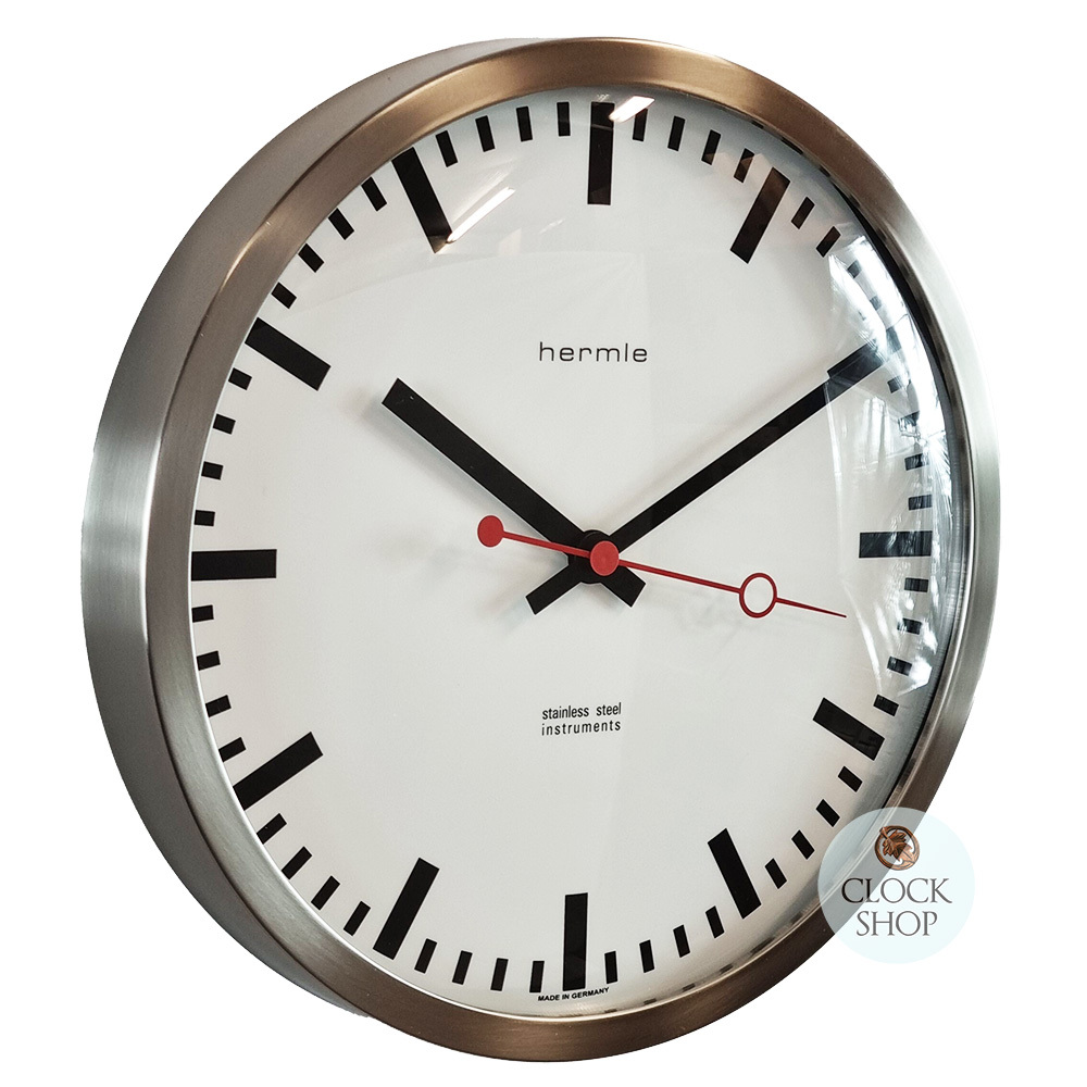 30cm Brushed Stainless Modern Wall Clock By HERMLE