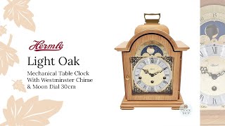 30cm Light Oak Mechanical Table Clock With Westminster Chime & Moon Dial By HERMLE