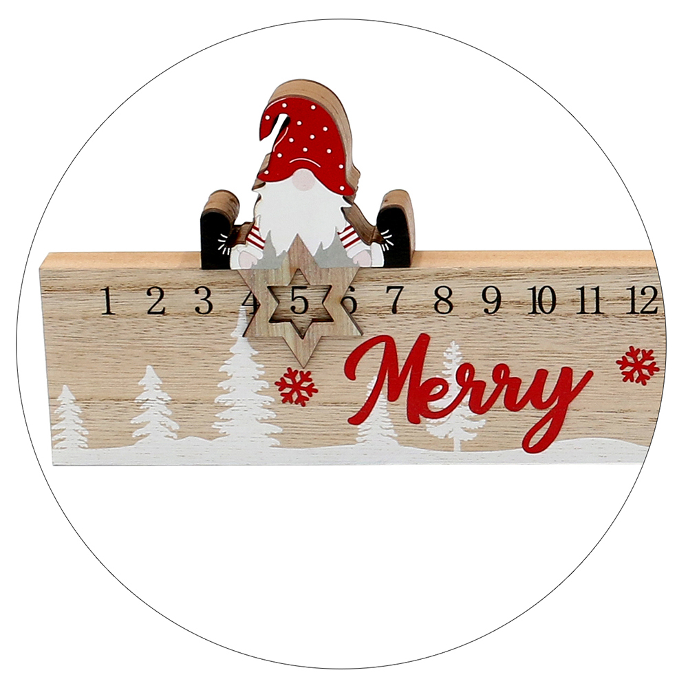 - Features a sliding Santa gnome that slides along above numbers 1-24