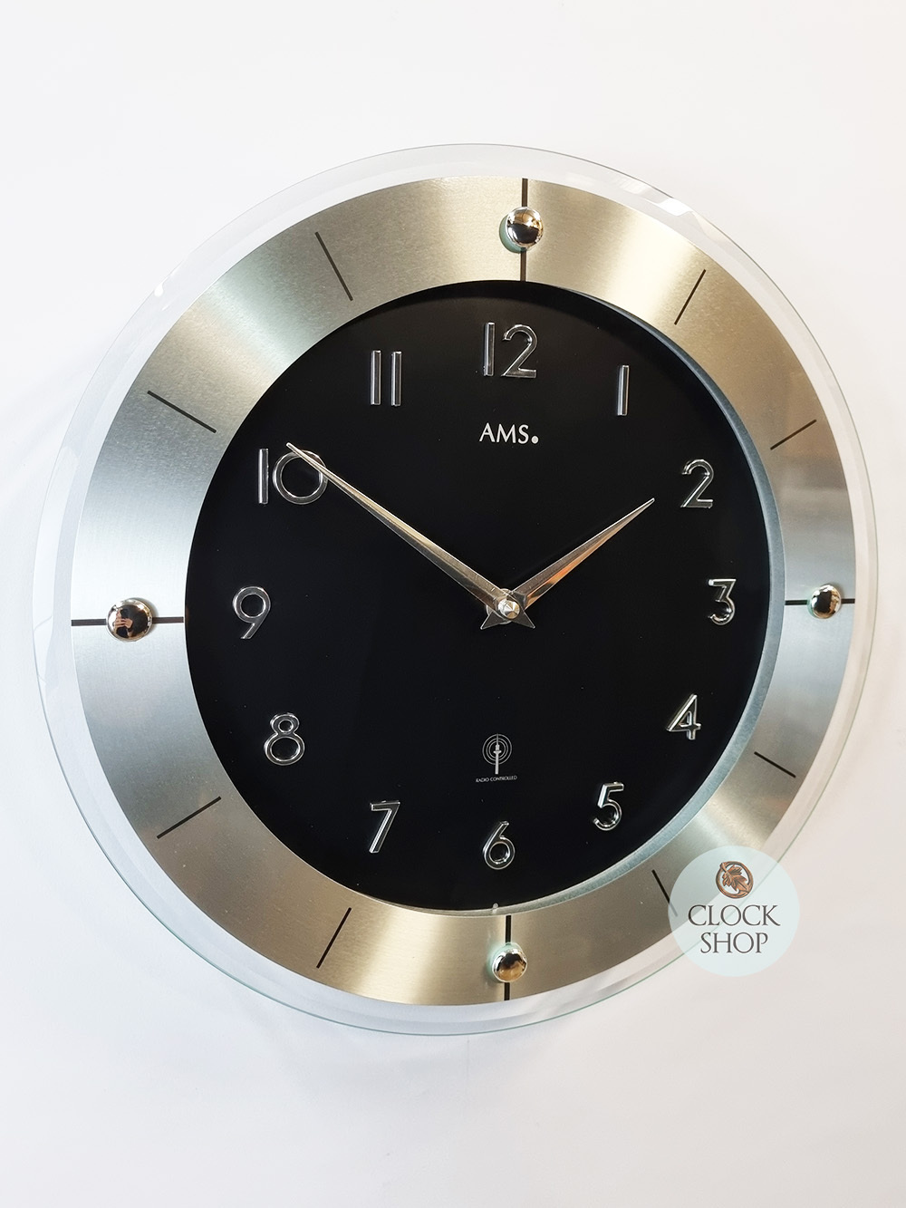 31cm Black & Silver Round Glass Wall Clock By AMS