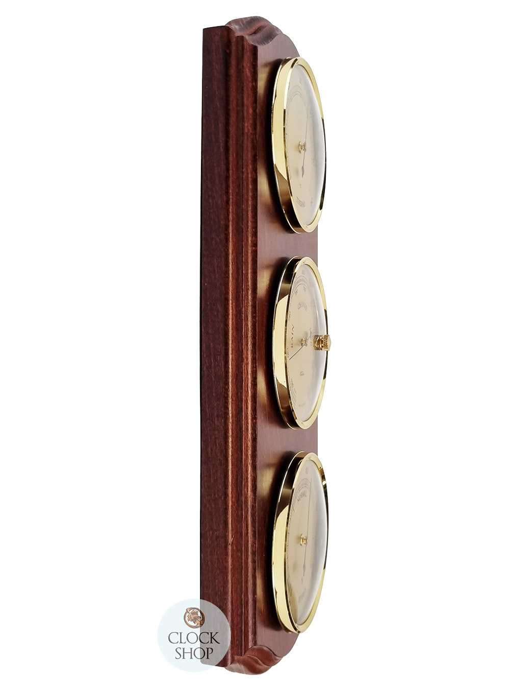 33cm Mahogany Weather Station With Barometer Thermometer & Hygrometer By FISCHER