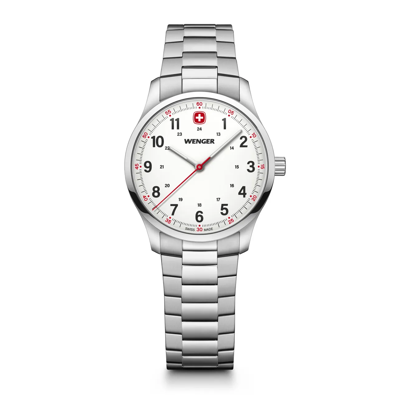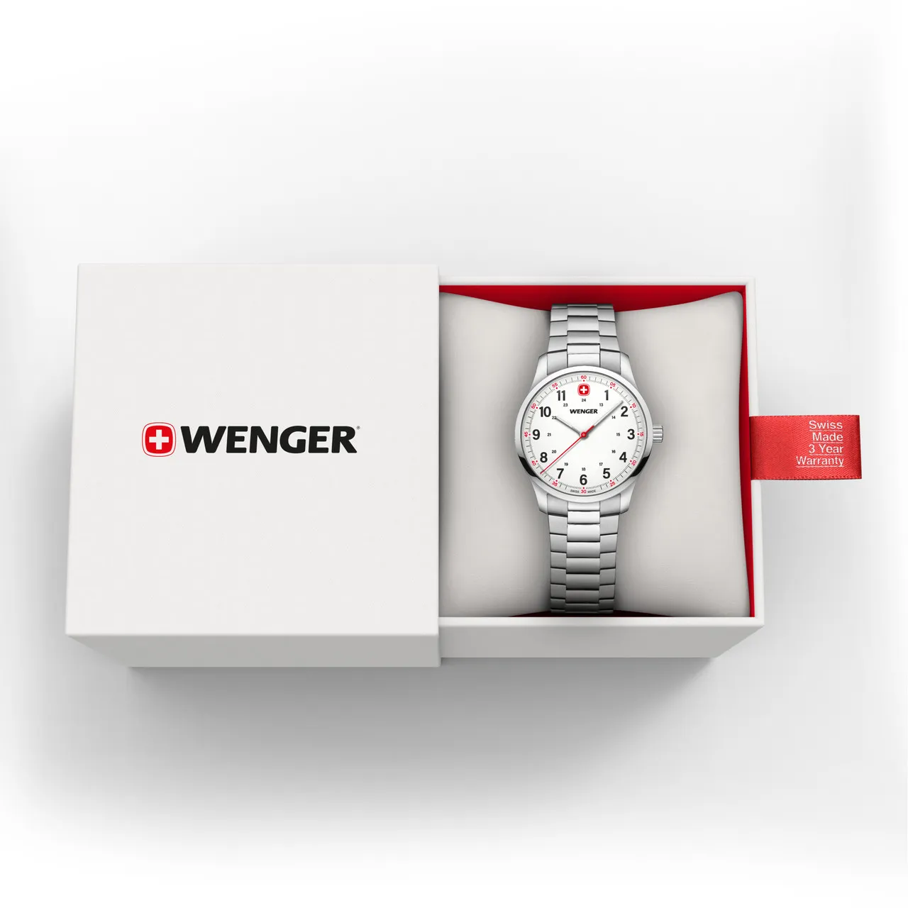 34mm City Classic Womens Swiss Quartz Watch With White Dial & Stainless Steel Band By WENGER