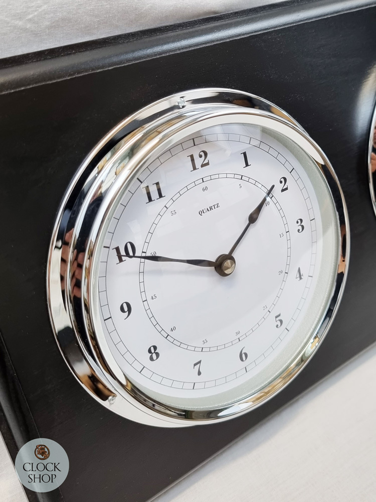 Both stylish and functional, this Weather Station Set is 100% made in Germany by world-renowned experts Fischer, and features two separate instruments made from high quality materials that are built to last a lifetime, including a quartz clock, and a barometer. Both instruments feature a white dial with easy to read information, protected by a chrome plated bezel, and an acrylic lens. Both instruments have been set neatly in an black coloured timber board that can be easily mounted on the wall.