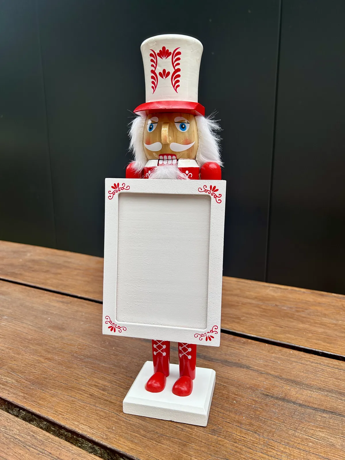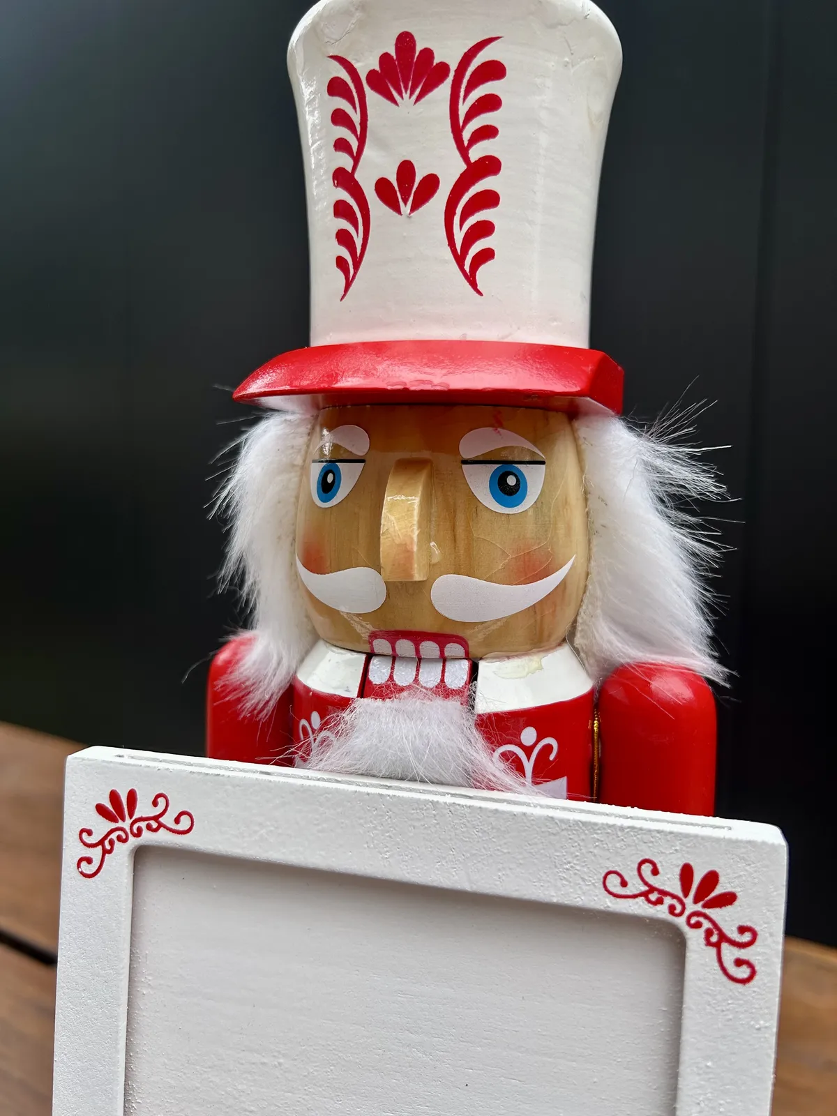 38cm Red & White Nutcracker With Photo Frame (Marks On Hat)