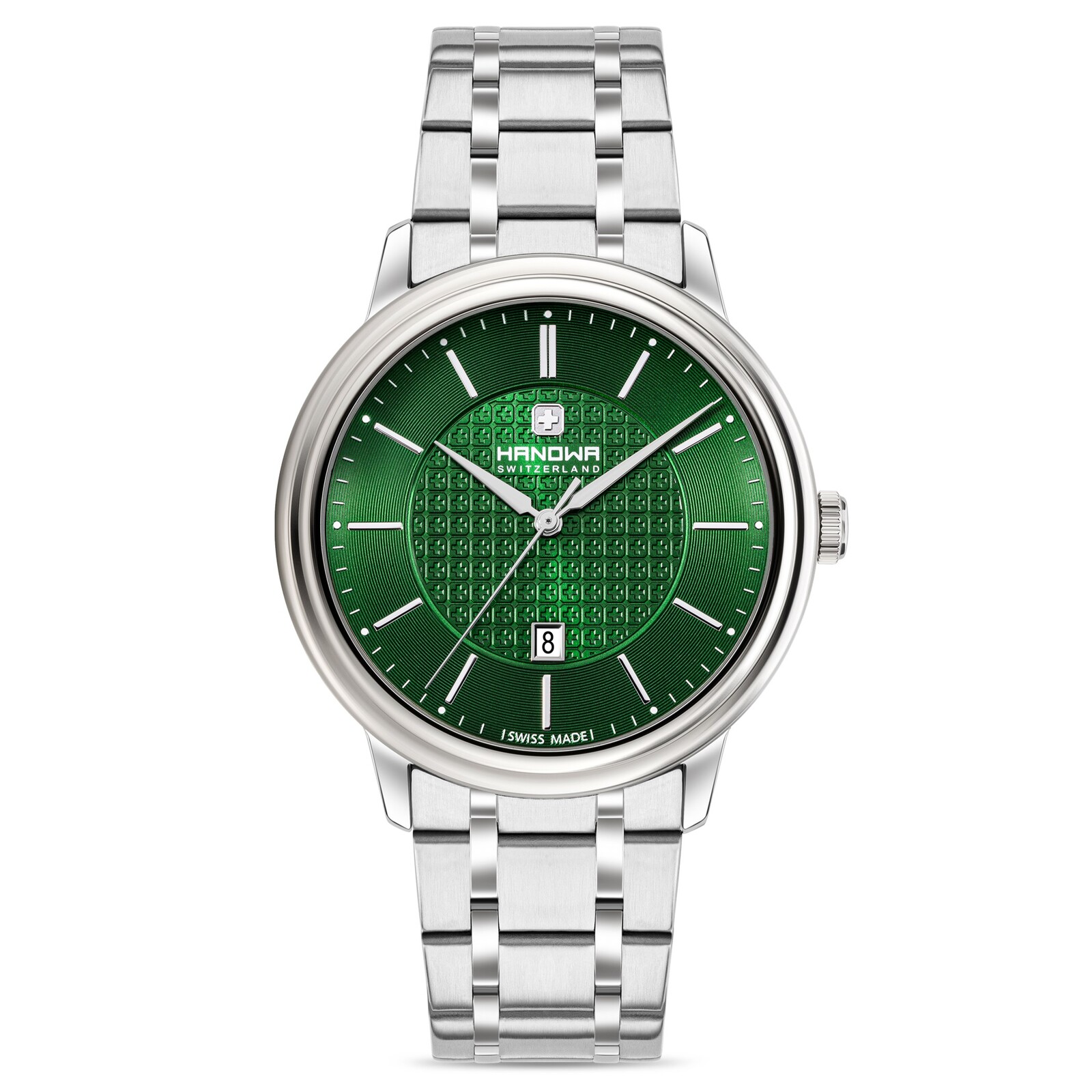 44mm Emil Silver Mens Swiss Quartz Watch With Green Dial By HANOWA