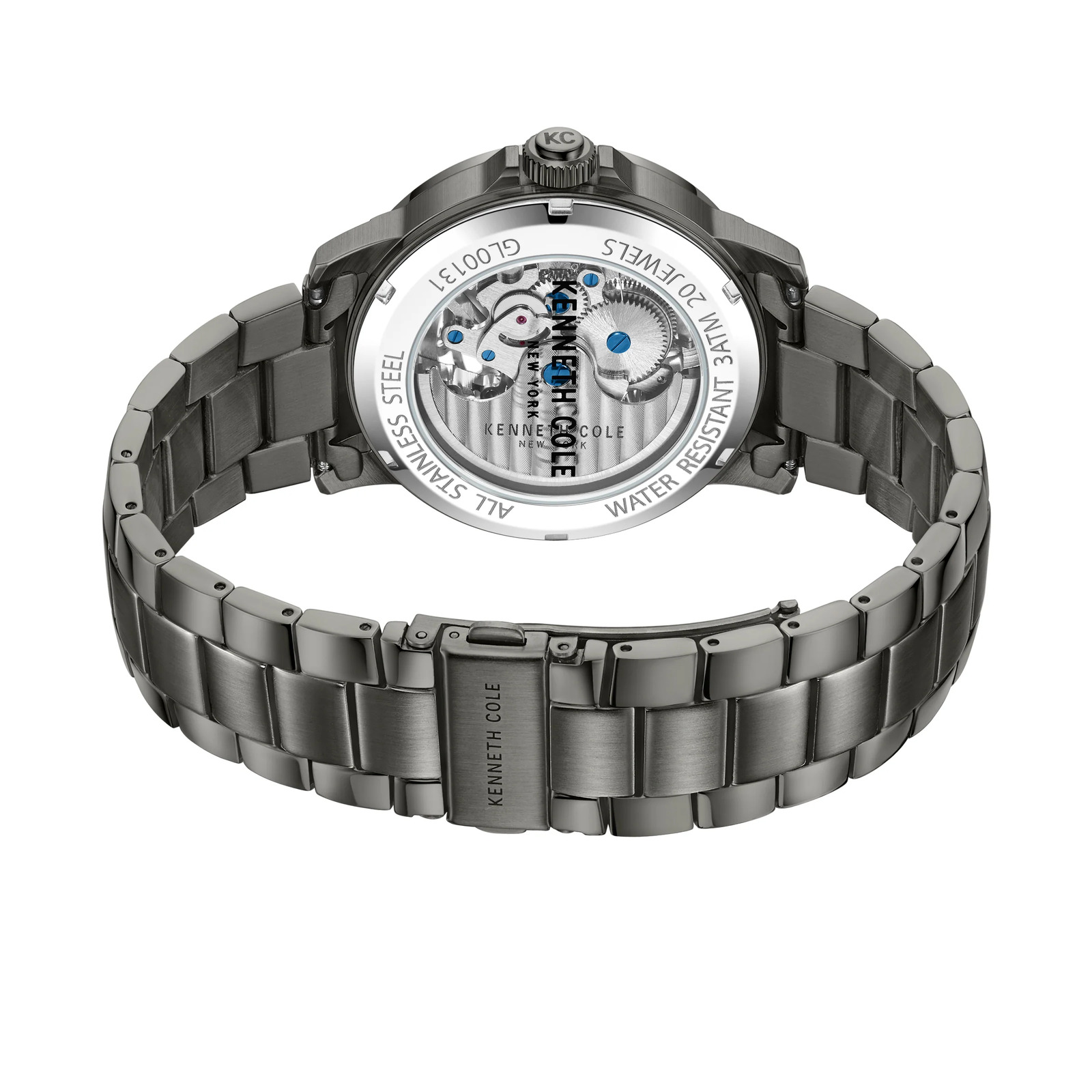 44mm Grey Automatic Mens Watch With Green Skeleton Dial By KENNETH COLE
