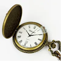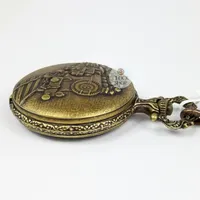 Crafted with premium materials, this pocket watch is designed to withstand the test of time, protected by a sturdy vintage gold plated case with a push open lid. The Swiss quartz movement provides accurate timekeeping. The case features an engraving of a steam train on both the front and back. With a complimentary Fob watch chain, it is convenient for everyday use.
