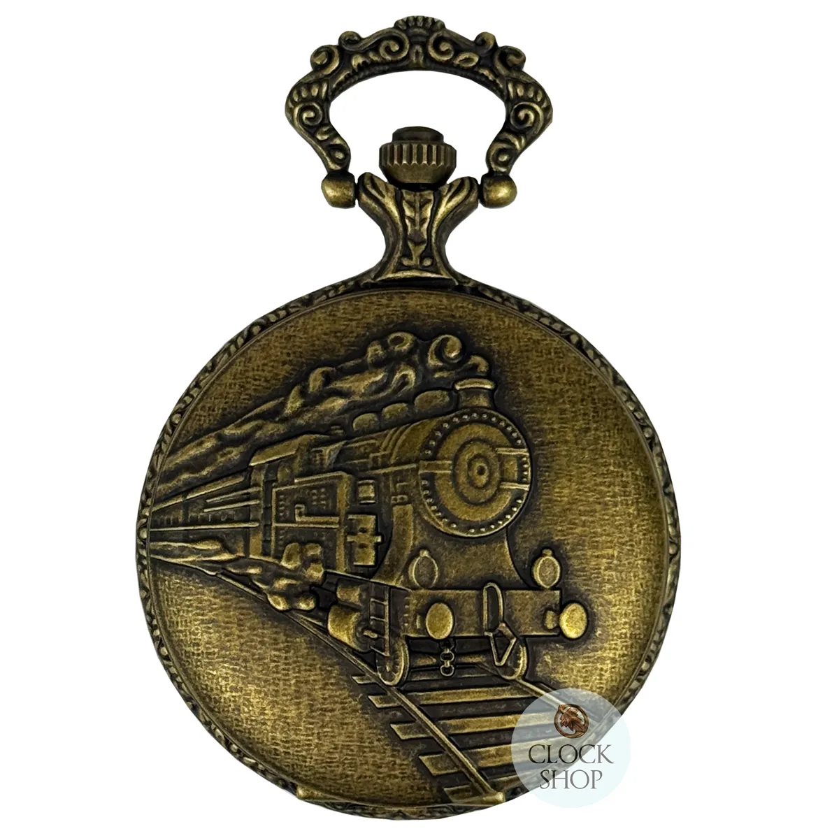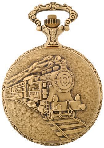 48mm Gold Plated Pocket Watch With Steam Train By CLASSIQUE (Roman)