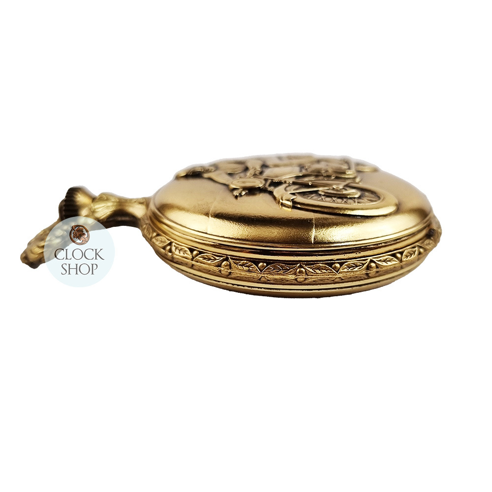 48mm Gold Unisex Pocket Watch With Motorbike Rider By CLASSIQUE (Arabic)
