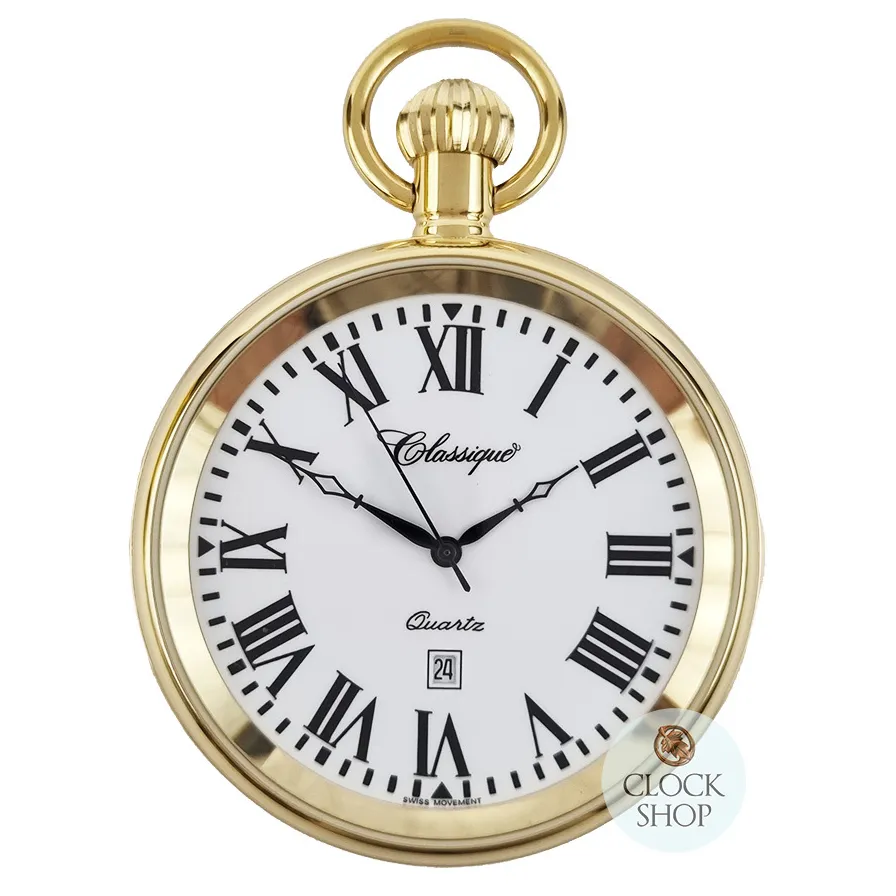 48mm Gold Unisex Pocket Watch With Open Dial By CLASSIQUE (White Roman)