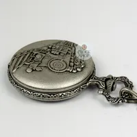 Crafted with premium materials, this pocket watch is designed to withstand the test of time, protected by a sturdy vintage pewter/rhodium plated case with a push open lid. The Swiss quartz movement provides accurate timekeeping. The case features an engraving of a steam train on both the front and back. With a complimentary Fob watch chain, it is convenient for everyday use.