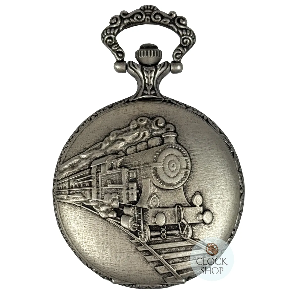 48mm Rhodium Mens Pocket Watch With Steam Train By CLASSIQUE (Roman)