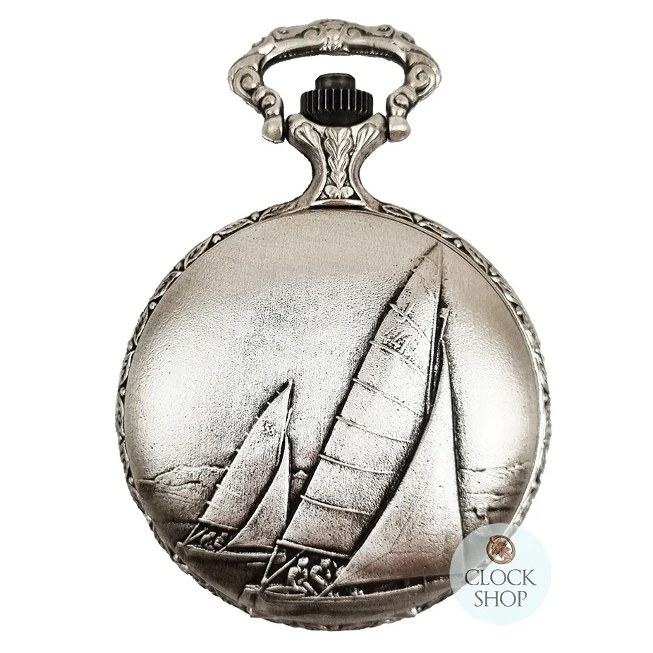 48mm Rhodium Unisex Pocket Watch With Sailing Boat By CLASSIQUE (Roman)