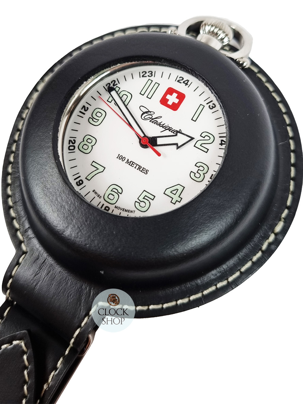 48mm Stainless Steel Workers Pocket Watch With Black Leather Pouch By CLASSIQUE