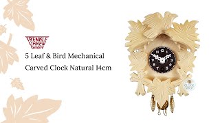 5 Leaf & Bird Mechanical Carved Clock Natural 14cm By TRENKLE