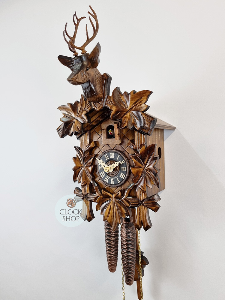 5 Leaf & Deer 1 Day Mechanical Carved Cuckoo Clock 30cm By ENGSTLER