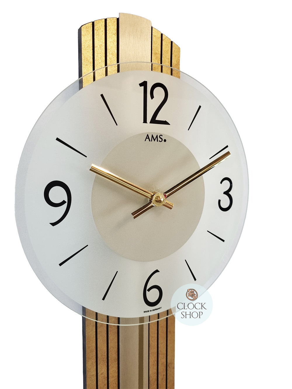 This beautifully designed two toned gold pendulum wall clock by AMS represents a refreshing and accurate timepiece that is aesthetically pleasing, suitable for those looking for a modern battery wall clock that draws the eye.