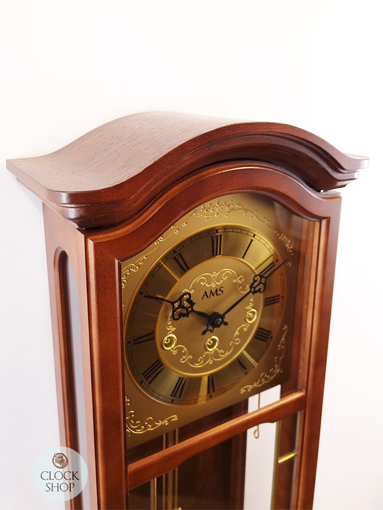 66cm Walnut 8 Day Mechanical Chiming Wall Clock With Brass Accents By AMS
