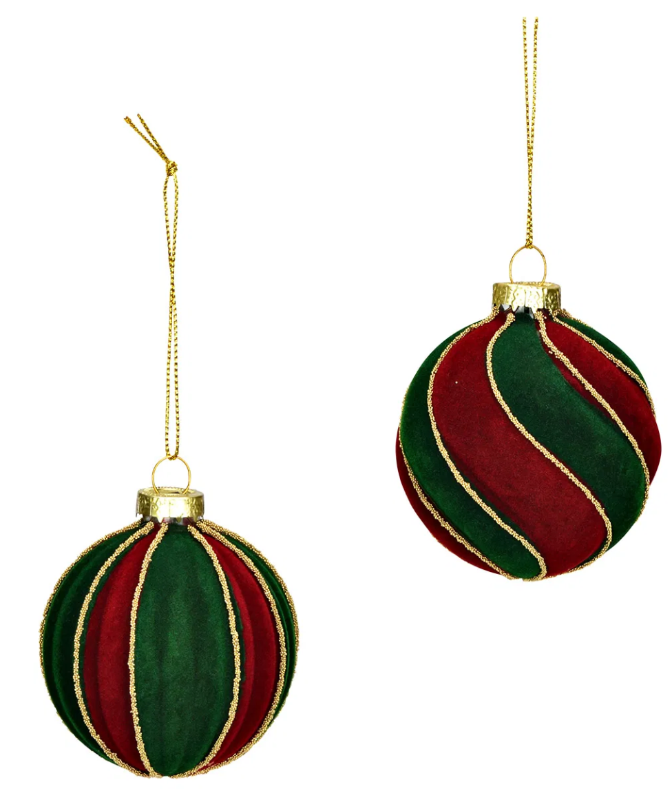 6cm Red & Green Glass Bauble Hanging Decoration- Assorted Designs