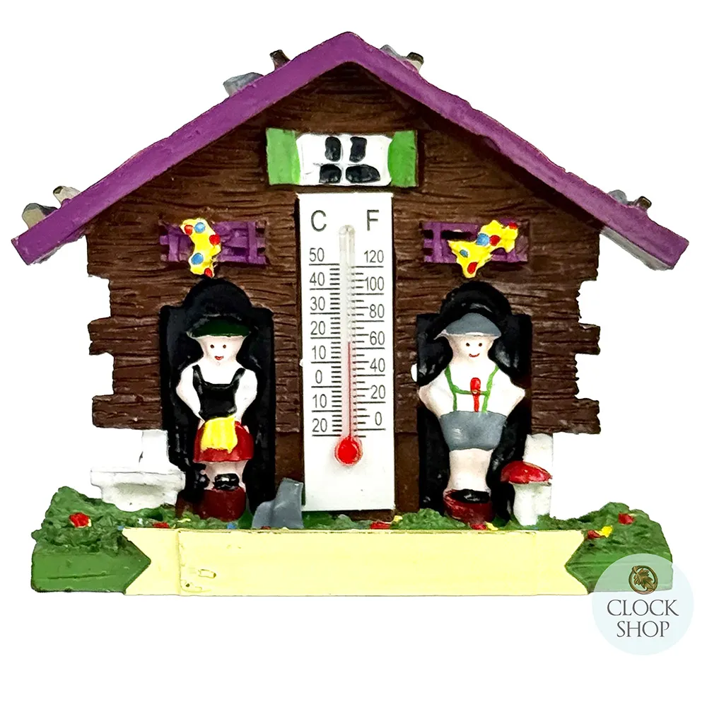 This delightful Fridge Magnet is modeled off the popular German weather house design. This highly colourful design comes complete with handpainted features including a lady and a man who usually predict the weather in a standard weather house design. The chalet house is painted brown and has a number of hand painted features.