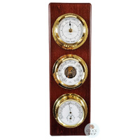 71cm Mahogany Traditional Weather Station With Barometer Thermometer & Hygrometer By FISCHER