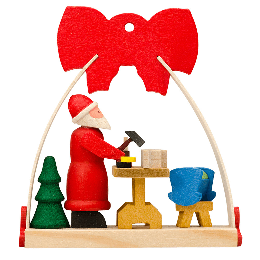7cm Bow Hanging Decoration Santa In Workshop By Graupner