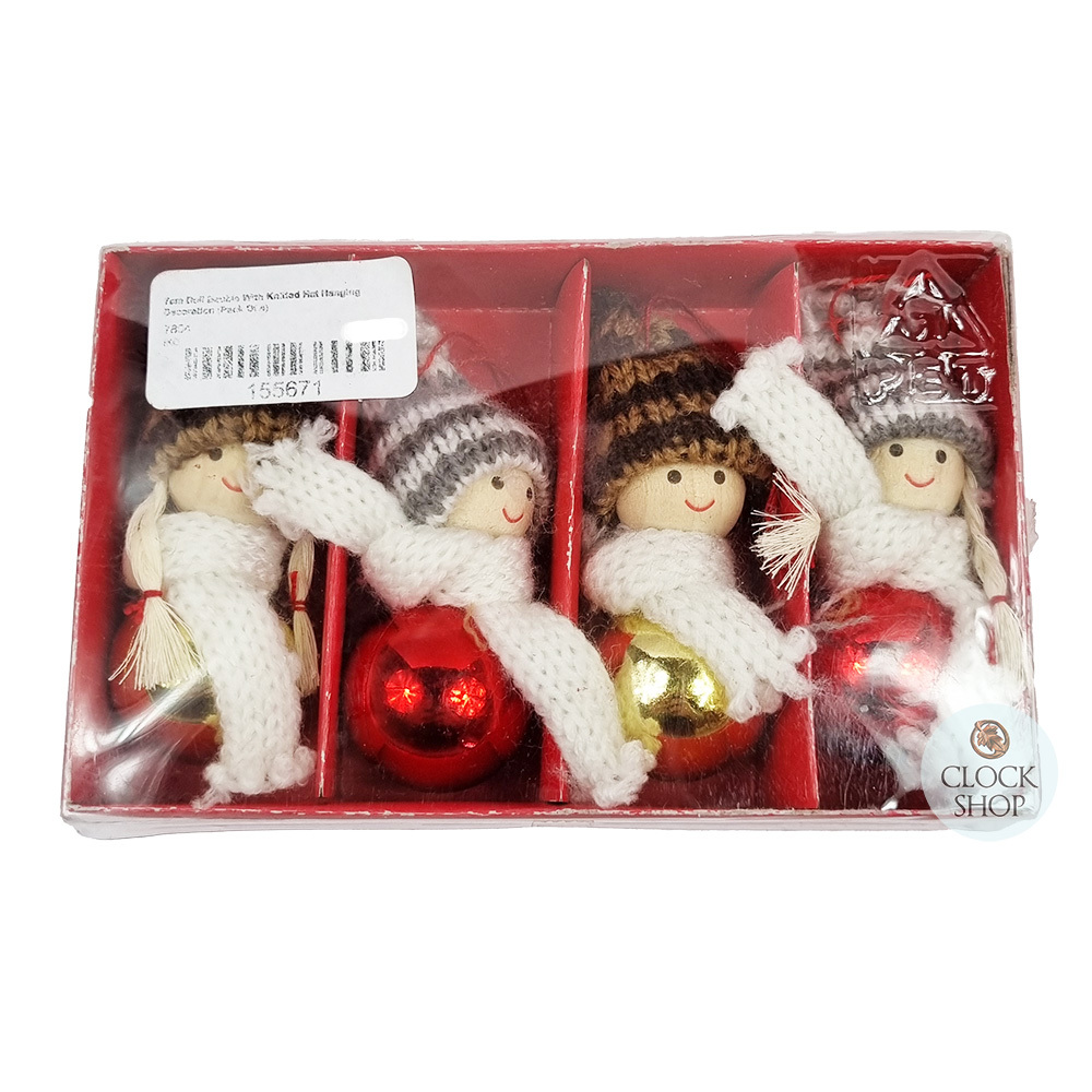 7cm Doll Bauble With Knitted Hat Hanging Decoration (Pack Of 4)