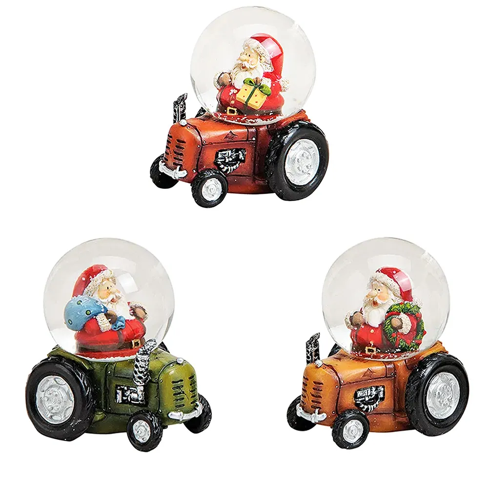 Add a playful touch to your Christmas decorations with our snow globe range that features a jolly Santa Claus on his tractor. Each snow globe is crafted from glass and polyresin, and measures 6cm x 7cm x 5cm. Available in three different colours, these snow globes make a wonderful gift idea for festive table decorations.