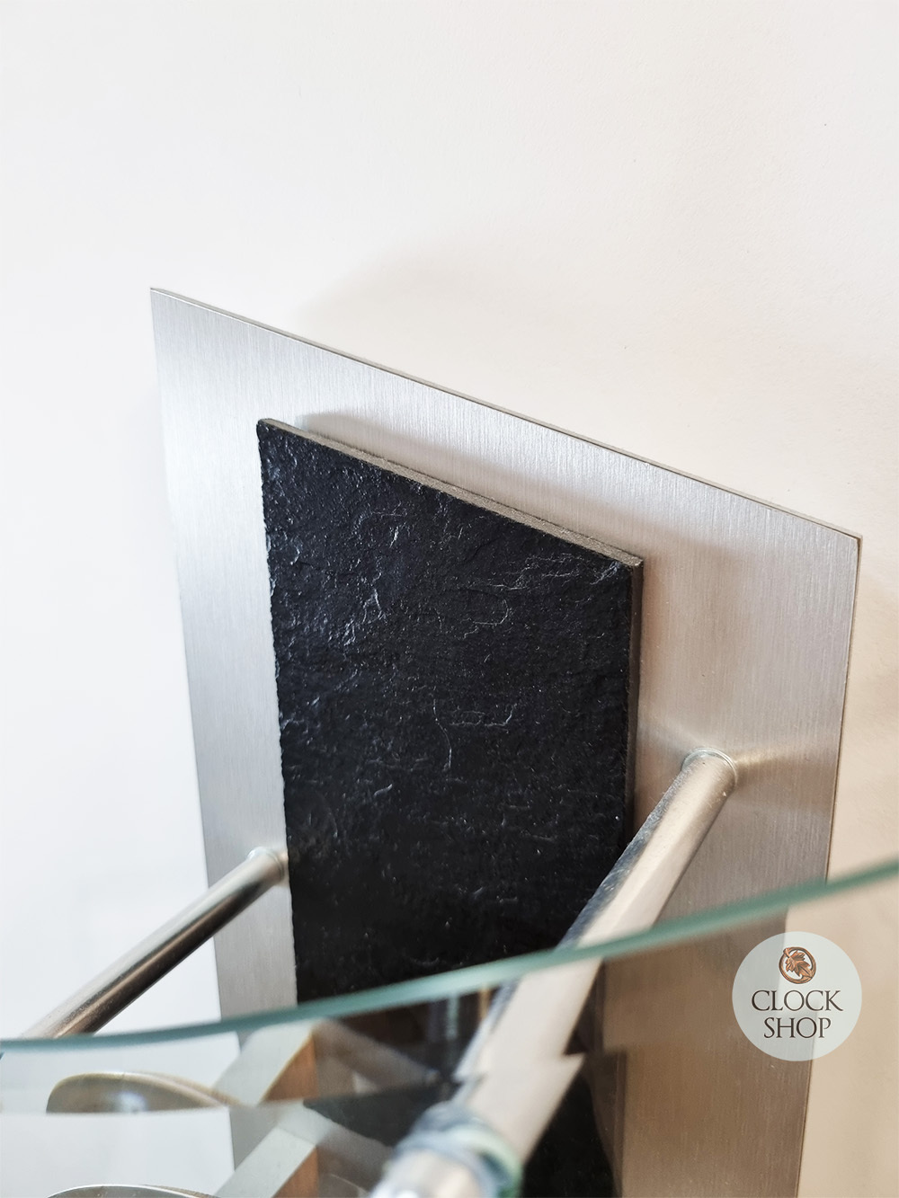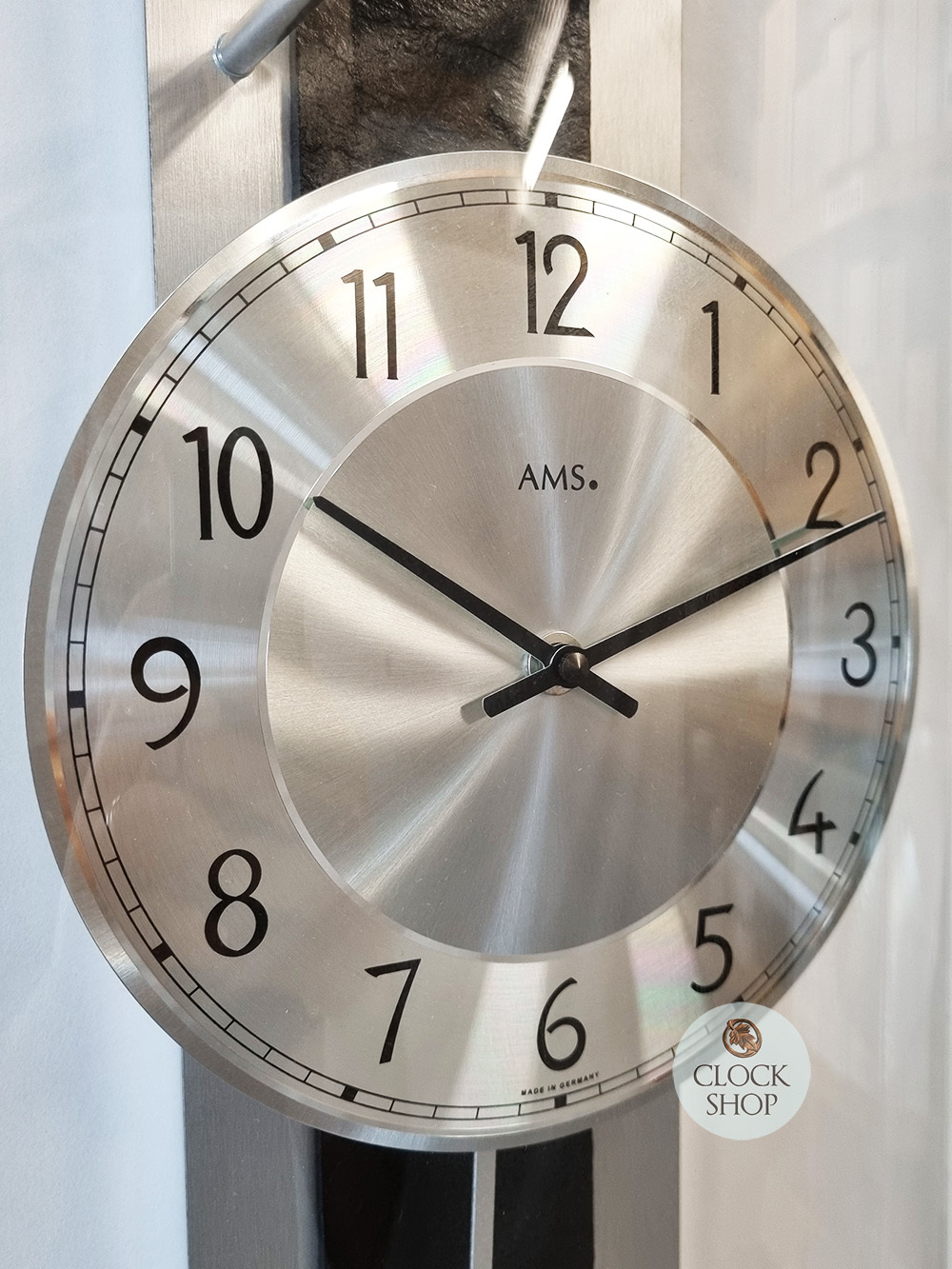 84cm Black & Silver Pendulum Wall Clock With Slate Inlay By AMS