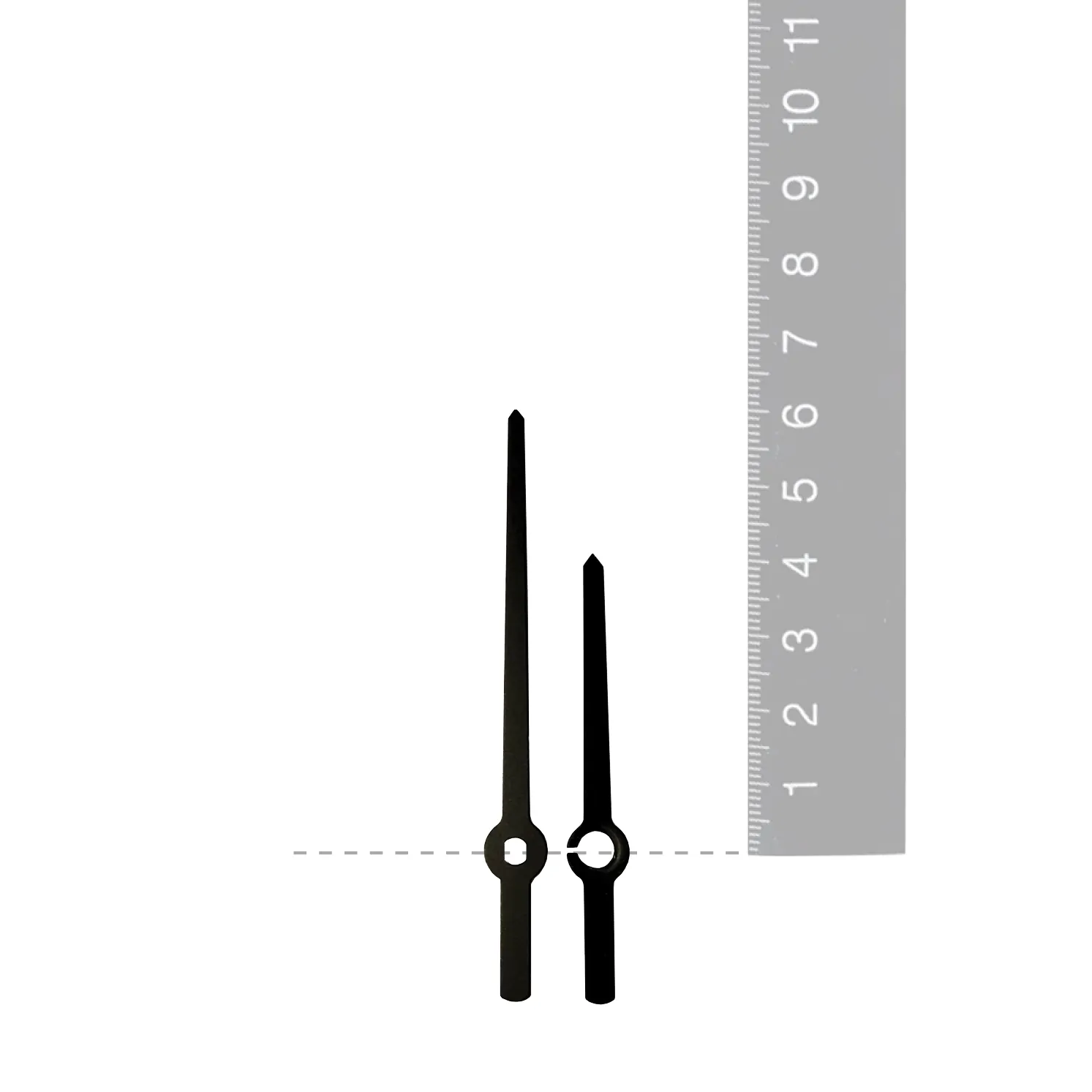 These hands feature a pointer design, with a minute hand length of 60mm and an hour hand length of 40mm. The hand length is measured from the centre hole to the very end of the hand, not from end to end.