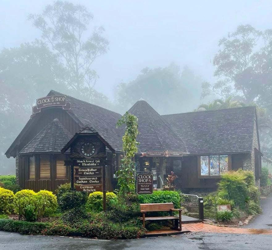 Our very own Clock Shop is located in the main street of Montville, and is arguably the most iconic building in all of Montville. Clock Shop is housed in a charming German chalet-inspired stone and shingle structure, which has been welcoming customers through the doors for over 30 years. Today, our unique building is a must-visit attraction for tourists from near and far and is cherished by many generations across Australia. Upon entering, guests are greeted by the rich scent of timber, the soothing ticking of hundreds of clocks both modern and traditional adorning the walls, along with the melodic chimes and cuckoos from cuckoo clocks and grandfather clocks. Our shop also boasts shelves stocked with thousands of traditional German goods, including authentic beer steins, traditional Christmas decorations, music boxes, weather instruments, unique souvenirs and an array of watches, along with much, much more. Many visitors describe the experience as like stepping into another world.