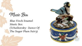 Blue Finch Enamel Music Box (Tchaikovsky- Dance Of The Sugar Plum Fairy)