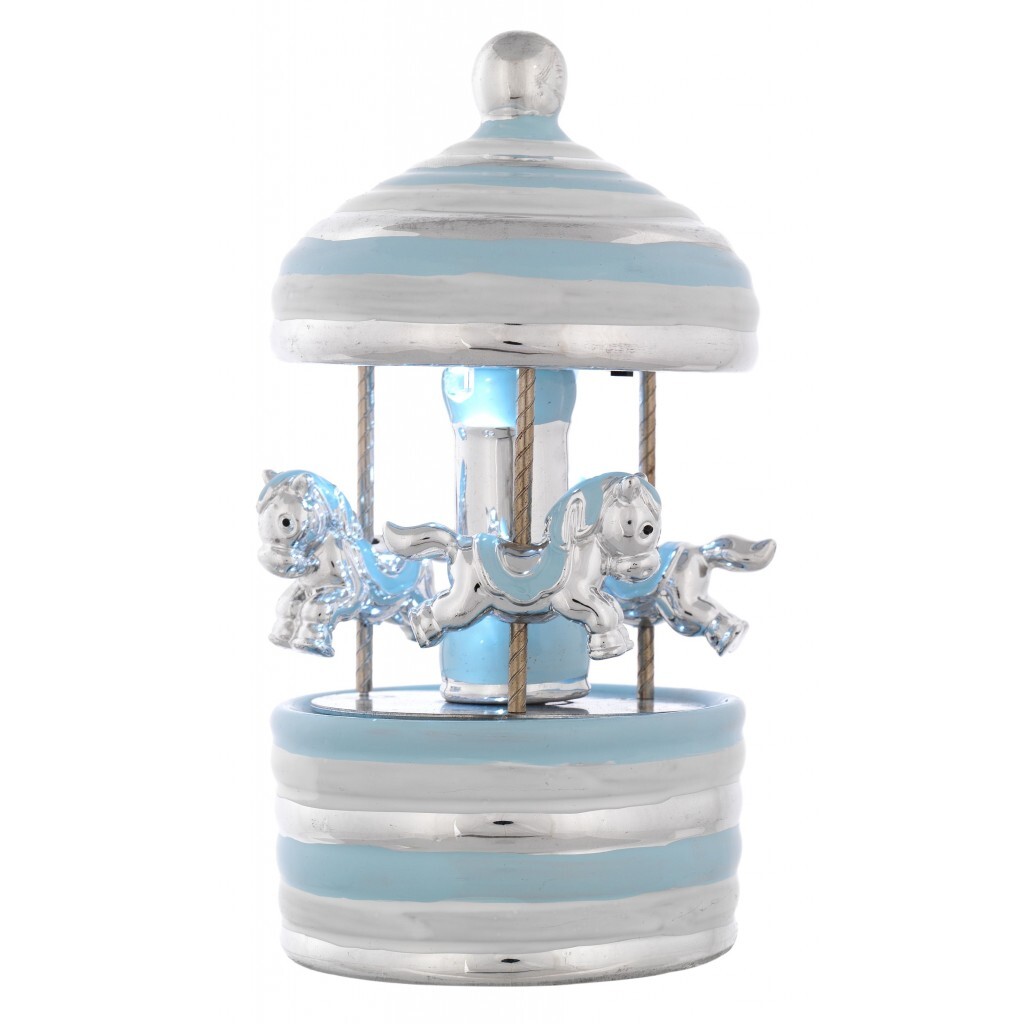 Blue & Silver Horse Carousel Music Box With Stripes (Twinkle Twinkle Little Star)